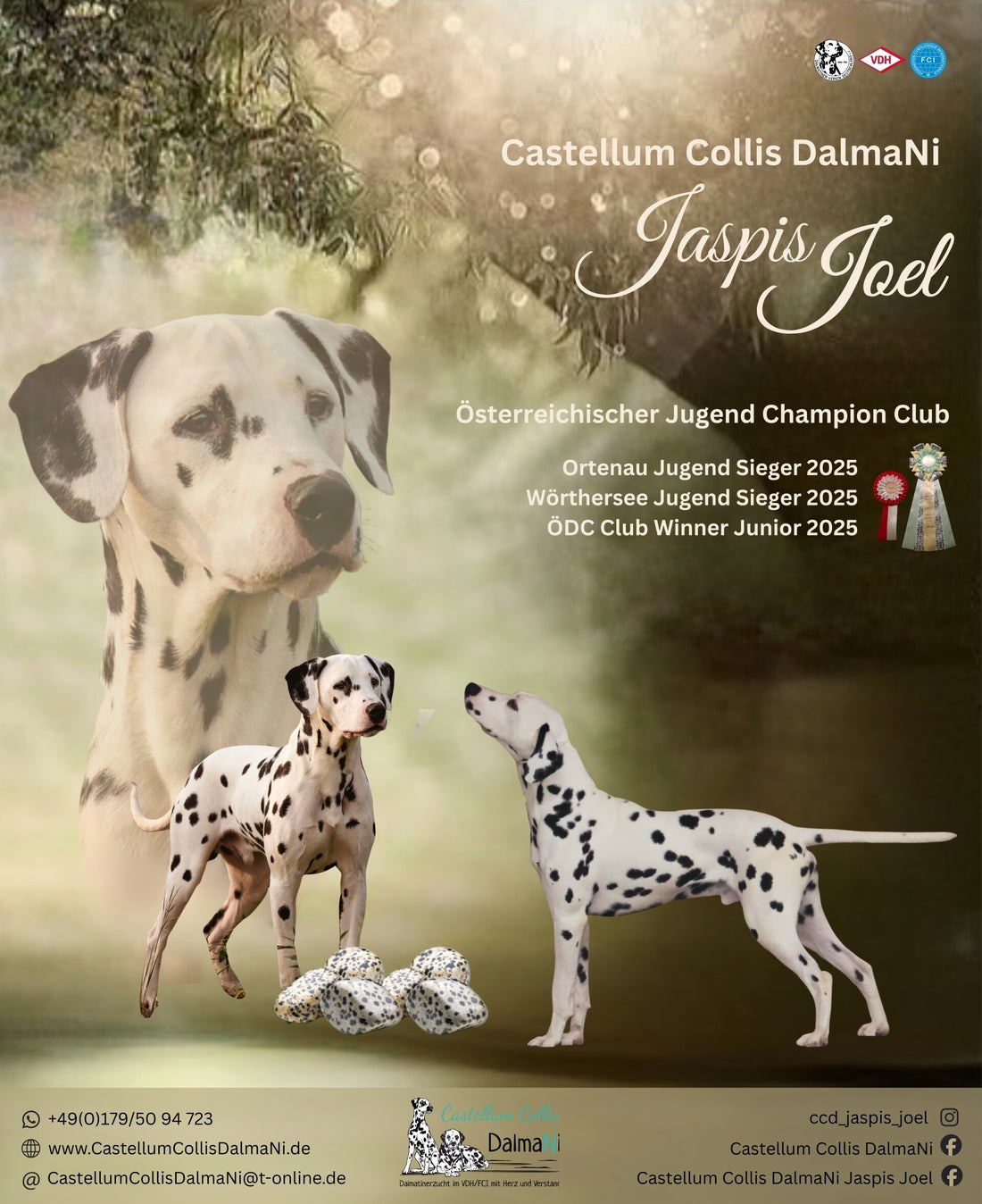Bei seinem 1. Start in Österreich auf der IHA in Klagenfurt konnte er sich am 1. Tag auch ein V1 JCAC ÖKV | JBOB sichern und wurde Bester Junghund & Wörthersee-Jugendsieger. Nur ein paar Wochen später startete er in Salzburg auf der Clubschau des ÖDAC und wurde erneut mit einem V1 JCAC Club belohnt und wurde ÖDAC Club WinnerJunior. Somit hat er alle Voraussetzungen erfüllt und darf nun stolz folgende Titel tragen:
