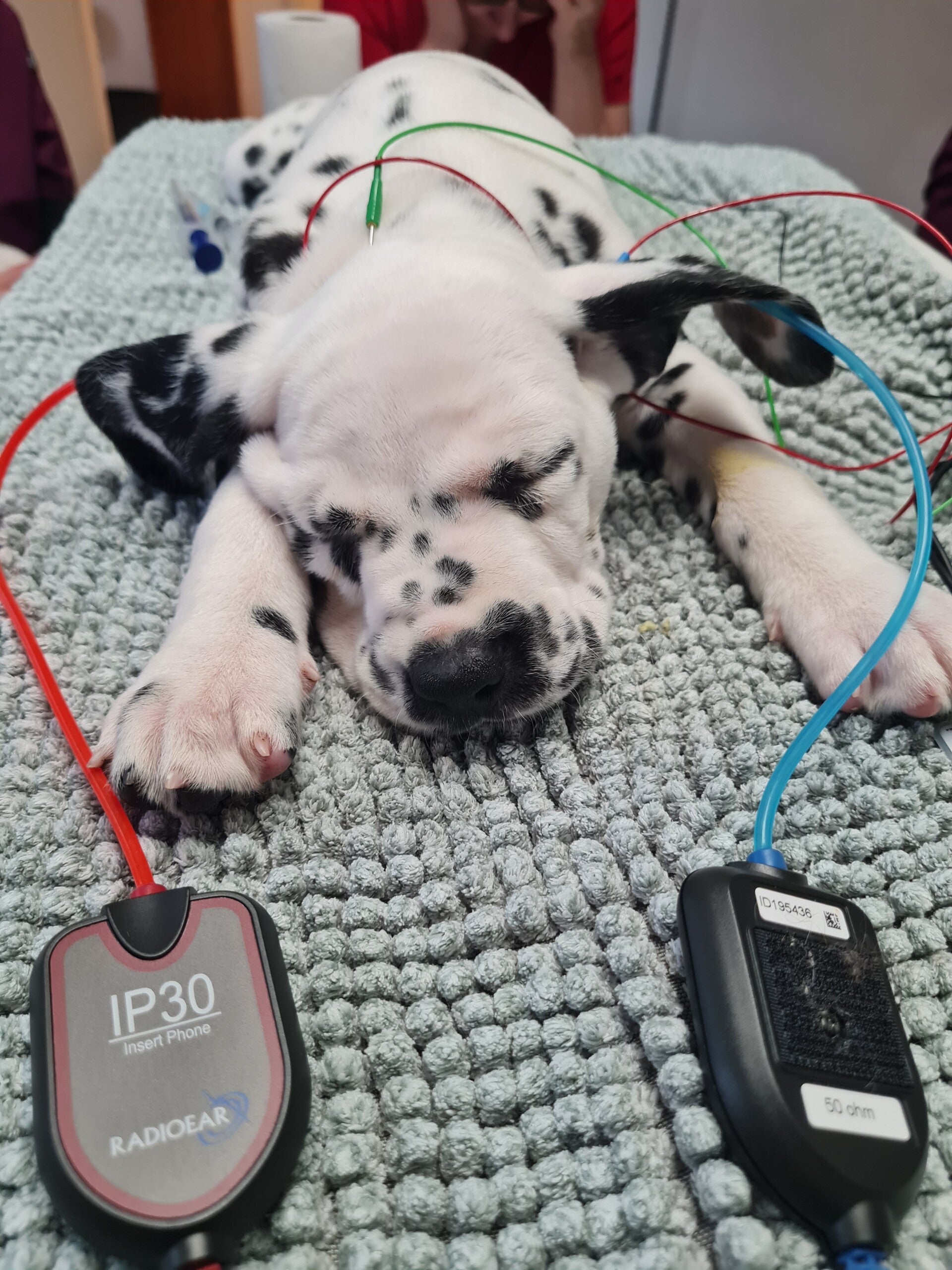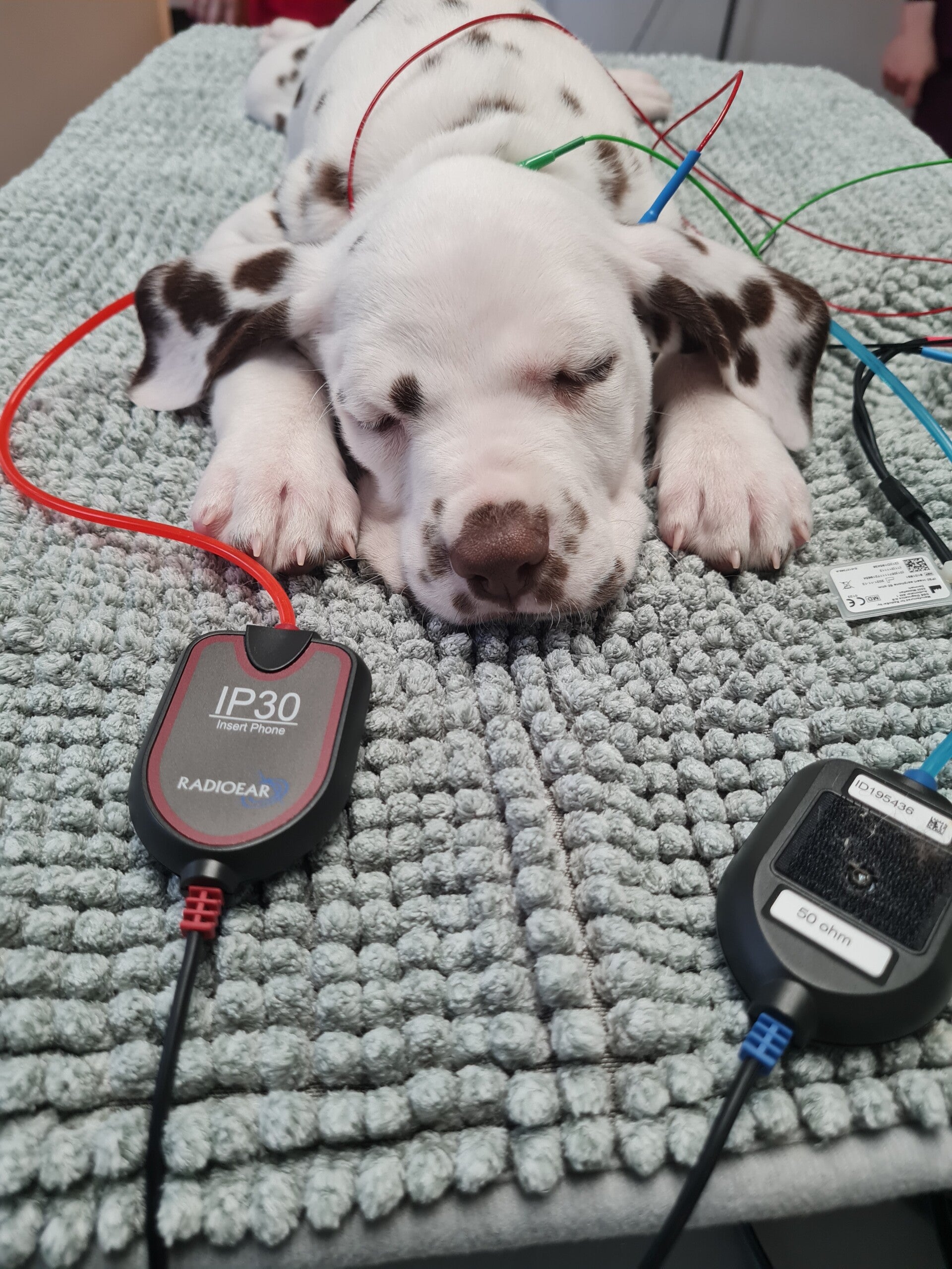 Die Auswertung ist in Bezug auf die rassetypischen Werte der AEP nicht so positiv ausgefallen, wie wir es uns erhofft haben - denn die Quote der einseitig hörenden bzw. tauben Welpen unserer Kaiserschnittwelpen ist in diesem Wurf statistisch gesehen ungewöhnlich hoch! 😔