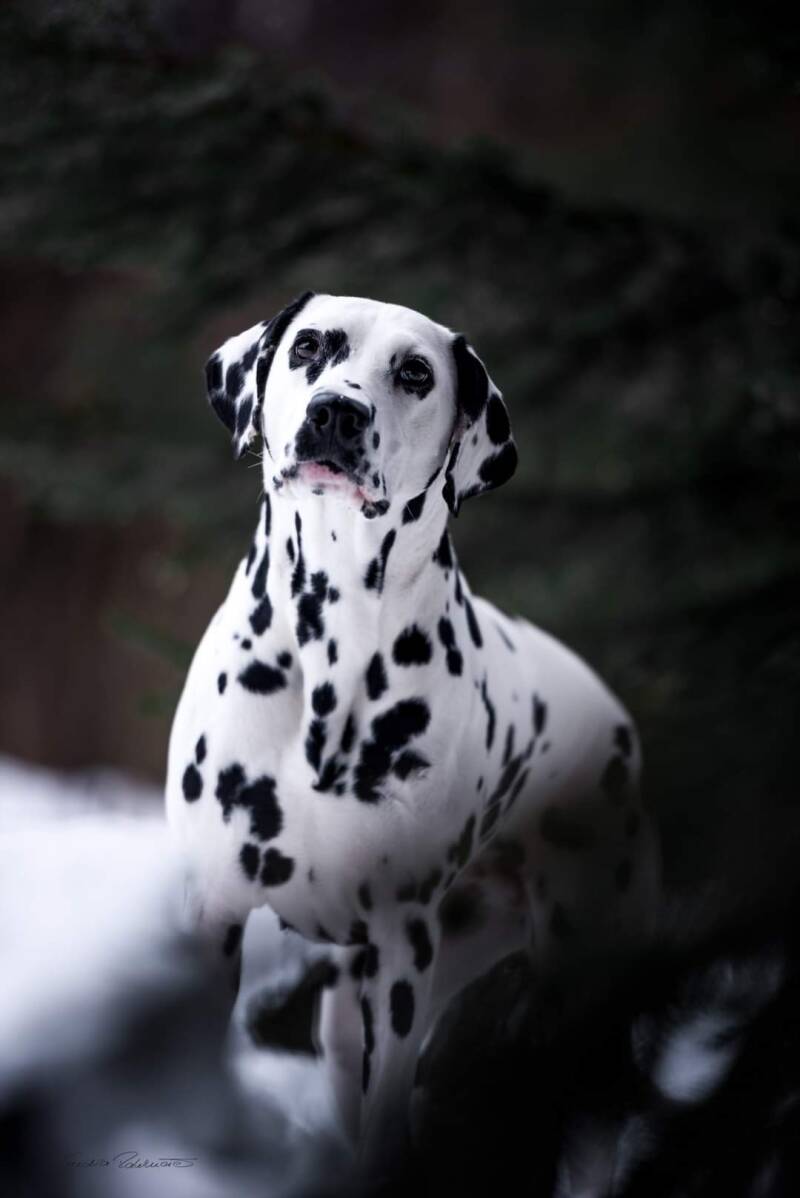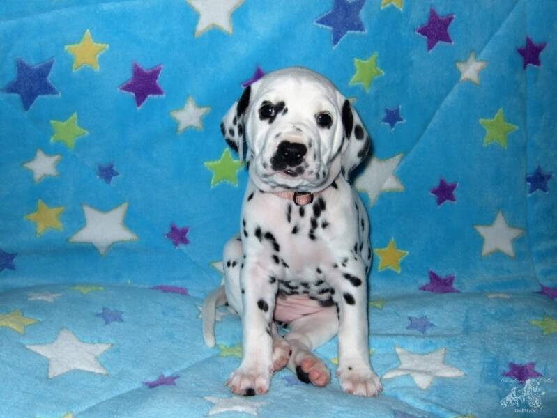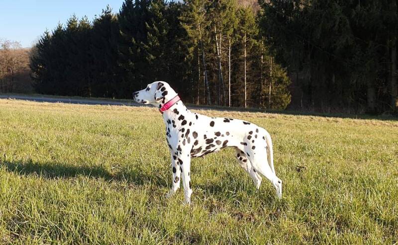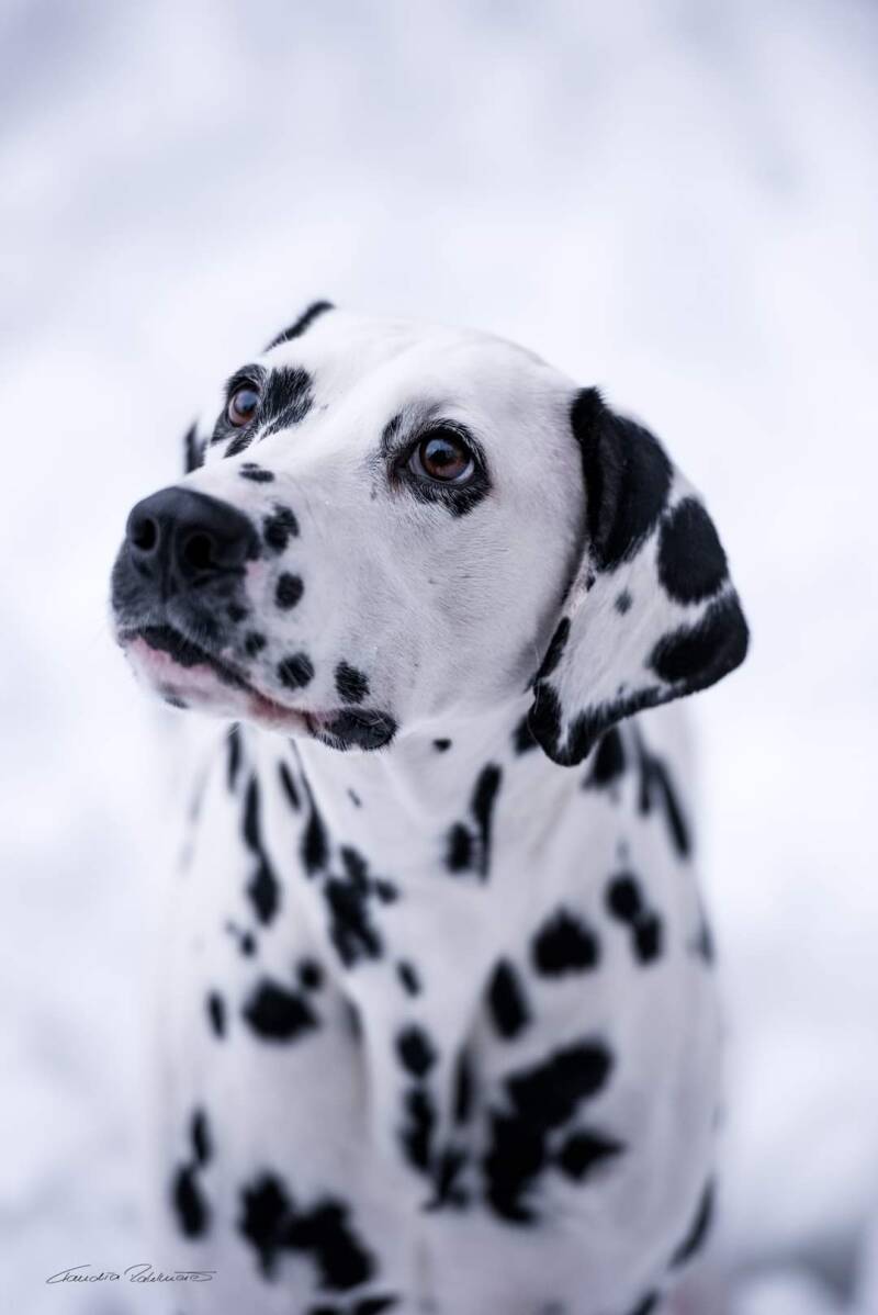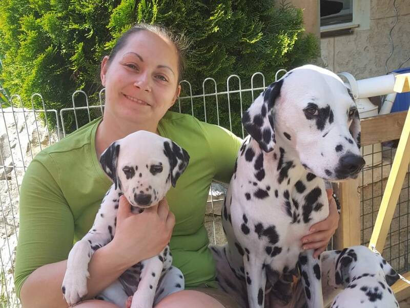 Alegra's 2. Wurf sollte mit einem ganz besonderen ud reinerbig schwarzen Rüden stattfinden, so viel die Wahl auf Campino, dem wir ja auch von Ausstellungen schon kannten. Somit erblickte unser E-Wurf im März 2020 das Licht der Welt. Aus diesem Wurf ist Alegra's Tochter Castellum Collis DalmaNi Eagle Elaine bei uns geblieben.
